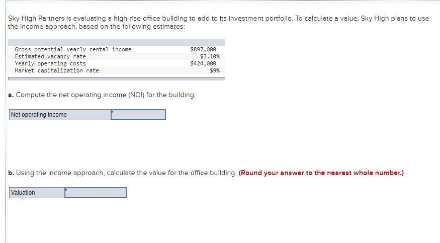 Solved Sky High Partners Is Evaluating A High Rise Office Chegg Com